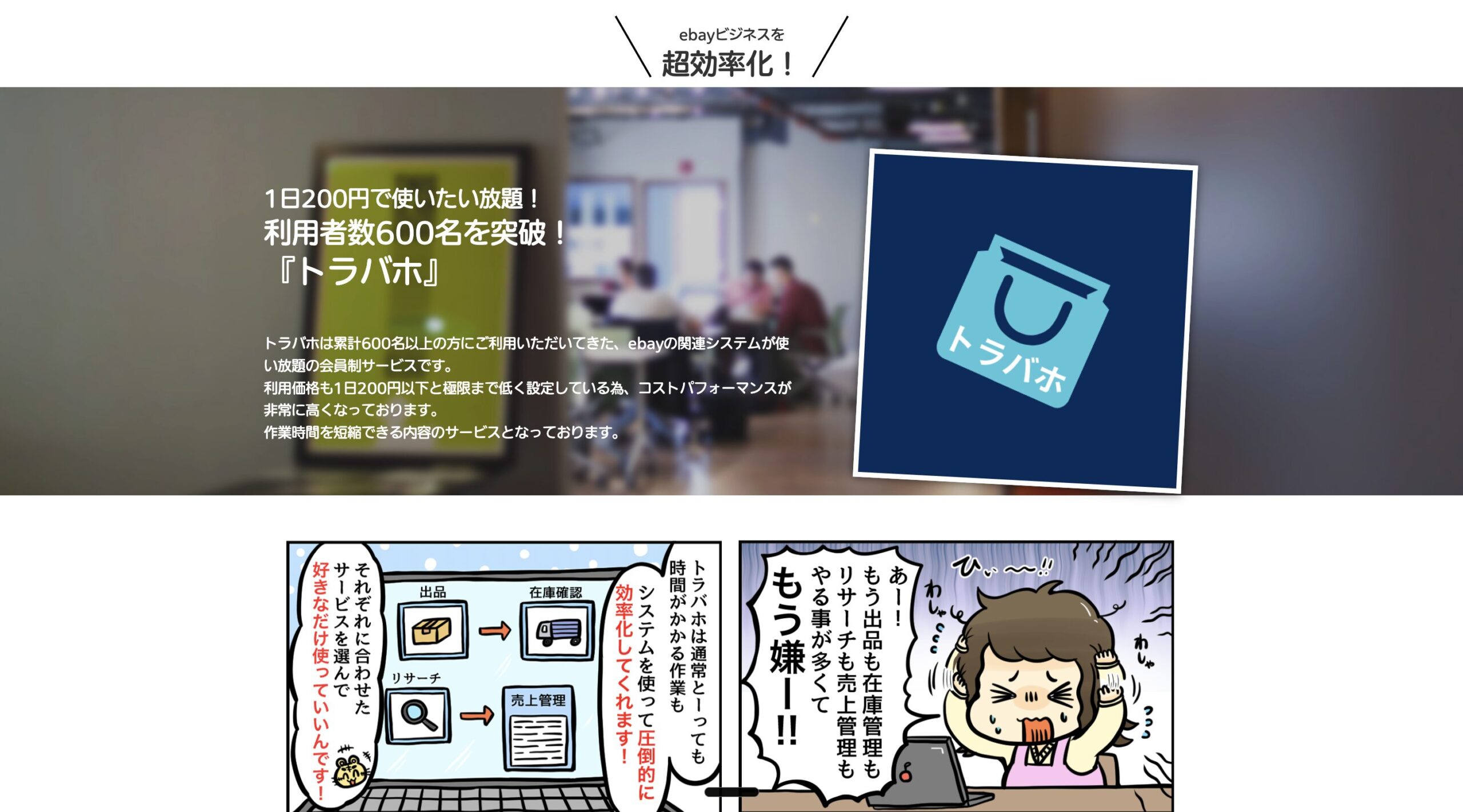 トラバホは、eBayセラー向けの出品・在庫管理サポートツールです。
