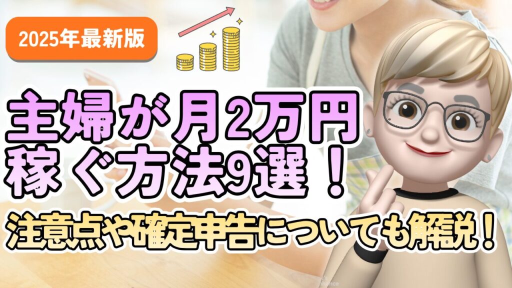 【在宅副業】主婦が月2万円稼ぐ方法9選!注意点や確定申告についても解説!