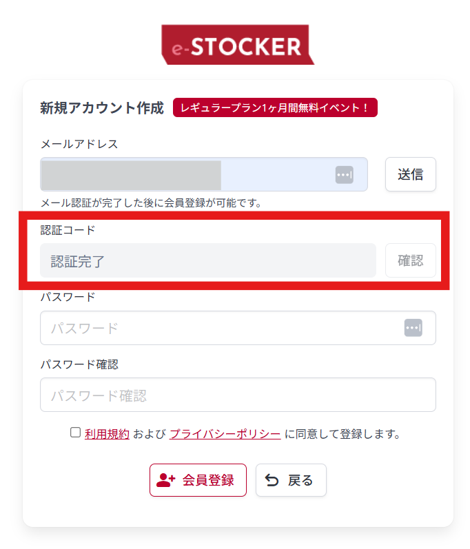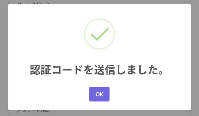 上記の画像が表示されたら、登録したメールアドレスの認証コードを確認してコピーしましょう。