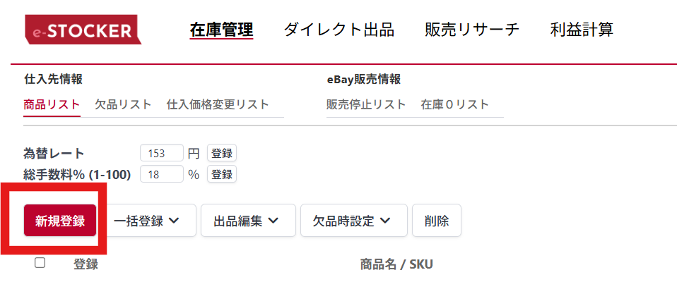 在庫登録する方法は、新規登録またはCSV一括登録の2通りがあります。
