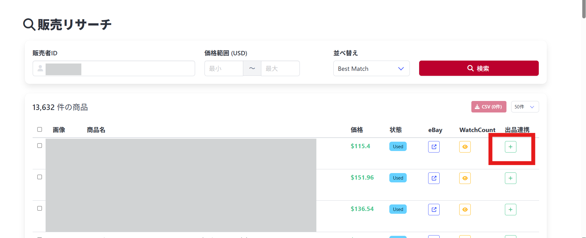 また、出品連携の「+」の部分をクリックすれば、「Sell Similar」的な感じでそのまま出品作業も可能です。