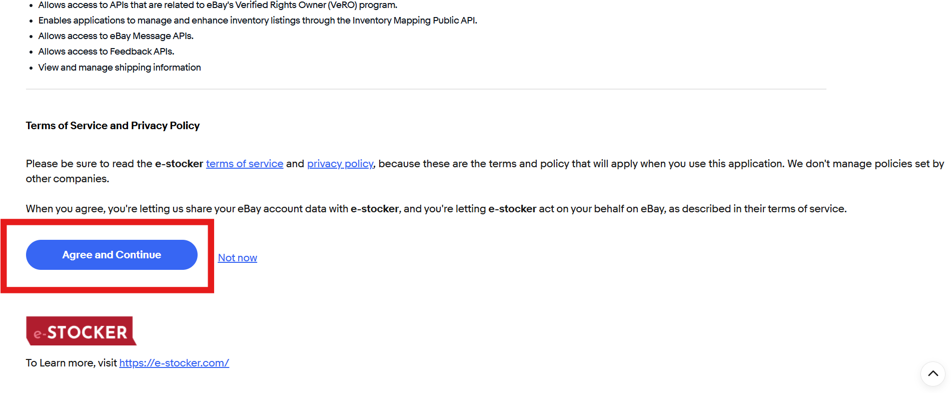 一番下までスクロールし「Agree and continue」をクリックすれば連携可能です。
