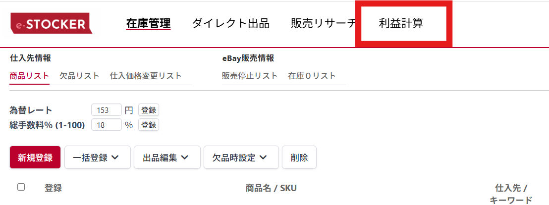 e-STOCKERの「利益計算」をクリックしてみましょう。